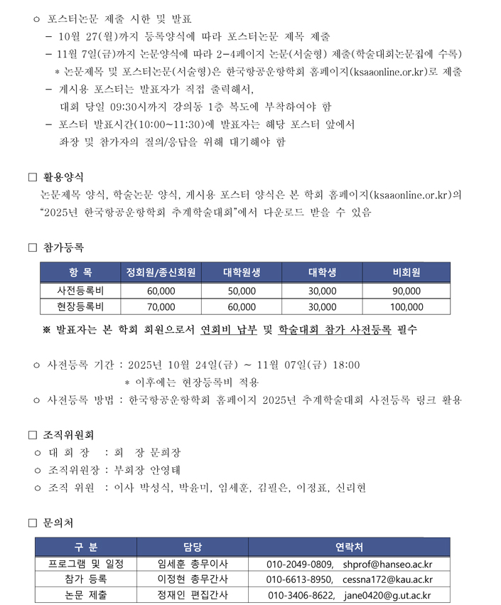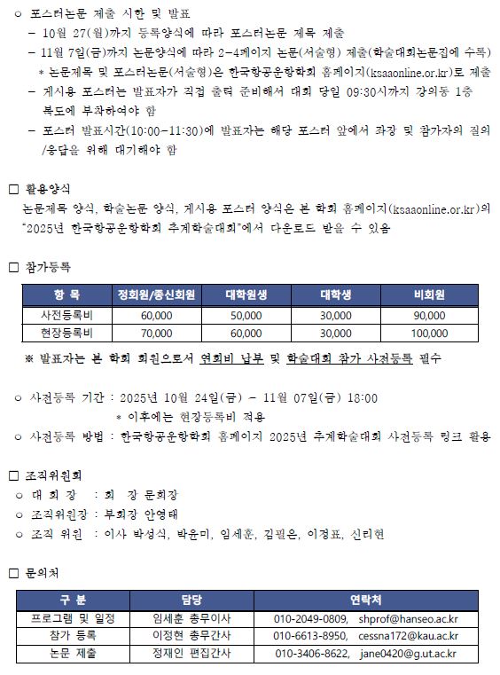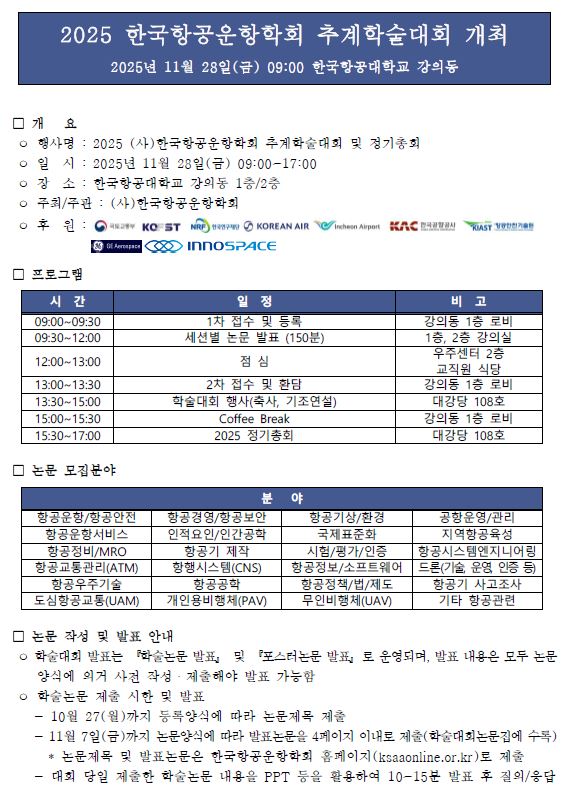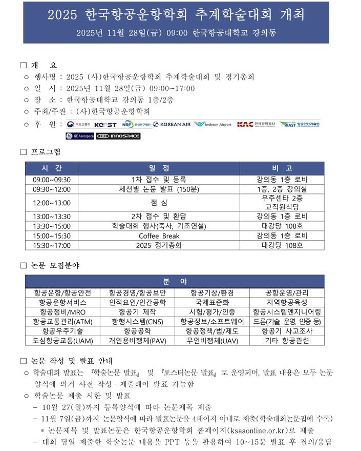 2025년 한국항공운항학회 추계학술대회